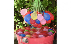 Armeaza-te in aceasta vara, cu unul dintre aceste seturi de baloane cu apa!Atacati adversarii cu aceste baloane, deoarece poti umple 37 de baloane in doar trei secunde.  Instructiuni de utilizare: 1. Conectati seturile de baloane la un furtun de apa.2. Umpleti toate baloanele, dupa care dati-le drumul intr-o galeata cu apa.3. Baloanele se vor umple in cateva secunde.4. Faceti echipe si incepeti batalia cu baloane de apa. Pachetul contine trei seturi a cate 37 de baloane ( in total 111), de culori diferite.