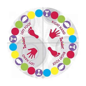 Contine si o bucata de carton patrata, impartita in 4 sectiuni (rosu, galben, albastru si verde) care reprezinta pe rand: piciorul stang, piciorul drept, mana stanga, mana dreapta.