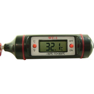 Termometru digital de contact, ideal in industria alimentara (ex: bucatarii) cu ajutorul lui putindu-se masura temperatura din interiorul unui produs solid sau lichid dar si pentru aere conditionate, sisteme de incalzire si ventilatie, service auto, laboratoare si depozite farmaceutice etc. Specificatii :- gama de temperaturi: -50 - +300 grade Celsius (-58 - +572 grade Fahrenheit)