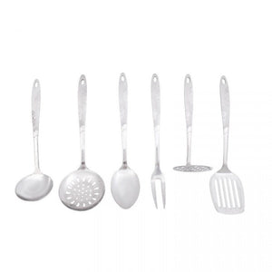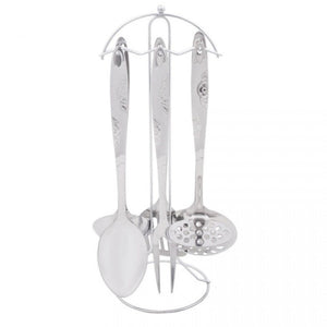 Set 7 ustensile pentru bucatarie , din inoxSetul este  format din 7 piese din inox :·          1 x polonic,·          1 x spumiera,·          1 x lingura mare,·          1x furculita friptura,·          1 x paleta,·          1 x pasator,·          1 x support .