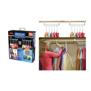 Organizator pentru 100 umerase Wonder Hanger Max este ideal pentru a va organiza hainele intr-un mod ingenios.Wonder hanger max este compus din 5 sloturi pentru umerase si reprezinta o metoda revolutionara de economisire a spatiului.Suportul pentru umerase Wonder Hanger Max dispune de 10 suporturi ce pot sustine o greutate de pana la 13 kg, ideal pentru hainle grele de iarna.Wonder Hanger Max  este compatibil cu toate tipurile de carlige (lemn, plastic si metal) si poate stoca pana la 50 de articole de imbracaminte.Suportul organizator de umerase Wonder Hanger Max se potriveste perfect in orice casa, astfel veti obtine un dulap organizat si mai mult spatiu de depozitare.