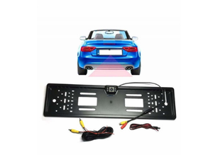 Camera video spate incorporata in suportul placutei numarului de inmatriculare, cu preluare automata a imaginilor din spatele autovehicolului pe LCD-ul din oglinda retrovizoare interioara sau ecranul din consola masinii la selectarea treptei de mers inapoi.Dispozitivul se conecteaza la orice monitor cu intrare video, Monitorul nu este inclus in pachet.
