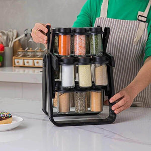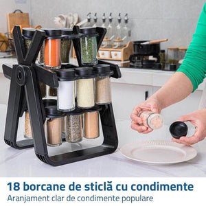 Un ajutor de nădejde în bucătărie pentru organizarea și accesul facil la condimentele preferate! Acest suport mobil cu 18 locuri pentru condimente vă permite să mențineți ordinea. Gata cu pachetele deschise care se varsă ușor și creează dezordine. Asamblarea este ușoară, la îndemâna oricui! Cu acest accesoriu practic, veți avea condimentele mereu la îndemână.