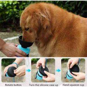 Sticla cu bol de apa pentru caini si pisici din silicon. Perfecta pentru a adapa animalele de companie intr-un mod confortabil atunci cand nu sunteti acasa: in timpul unei plimbari prin parc, intr-o calatorie cu masina, o excursie, etc.Functioneaza foarte simplu: trebuie doar sa umpleti sticla de apa, iar atunci cand animalul doreste sa bea, trebuie sa apasati pentru ca apa sa urce prin canal pana la bolul cu orificiu care actioneaza ca un dop, astfel incat animalul va putea bea cu usurinta.Piesele sunt detasabile si usor de curatat. Material: Silicon