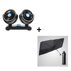 Acasa Articole Auto & Moto Pachet auto: Ventilator auto dublu, 10W + Parasolar tip umbrela