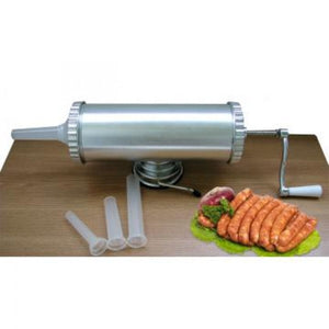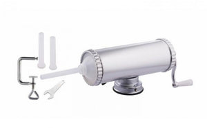 Aparat de umplut carnati si lebar pentru 1.5kg.Masina de umplut carnati dispune de 3 palnii pentru carnati 15,19 si 22mm, conceputa din aluminiu dur, este indispensabil in orice bucatarie.Aparat de facut carnati cu baza aspiratie, din aliaj de aluminiu dur cu prindere prin ventuza ofera mobilitate la prindere, curatare usoara si nu rugineste. Acest aparat de facut carnatir te ajuta sa prepari carnatii de casa in timp record !Caracteristici:-prinderea se face in 2 moduri cu ventuza sau de masa cu filetusor de folosit si de curatatmateriale din dur aluminiucapacitate:1.5kgdimensiune soclu:10,7 x 28,6 cmPachetul contine:aparatul pentru carnati cu ventuzamanivela de filet atasabilaaccesoriu de prindere pe masa- cheita pentru insurubatsoclu pentru palnii 3 palnii de diferite dimensiuni respectiv 15,19 si 22mm.