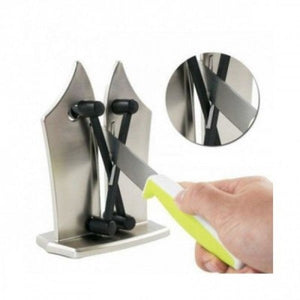 Ascutitor pentru cutite simplu si usor de utilizat, ascutirea se realizeaza prin tragerea lamei cutitului printre 2 lamele din otel inoxidabil, de la baza lamei spre varf, de sus in josAcest dispozitiv ascutit cutite profesional ascute toate cutitele tocite doar in cateva secunde !Aparatul pentru ascutit cutite dispune de doua brate independente cu arc, care contureaza marginea cutitului mai bine decat o piatra de ascutit cutite.Ascute si lustruieste cutite vechi, cutitul bucatarului-sef, satarul etc.Ascutitorul profesional si portabil de ascutit cutite functioneaza pe toate tipurile de lame,de la standard,la zimtate si inclinatePachetul include:- dispozitiv manual pentru ascutit cutite si foarfece.