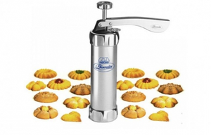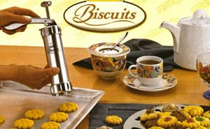 Kitul de facut Biscuiti de casa – contine aparatul special pentru aluat si 14 forme diferite. Kitul de facut biscuiti pentru acasa contine:– aparatul pentru aluat