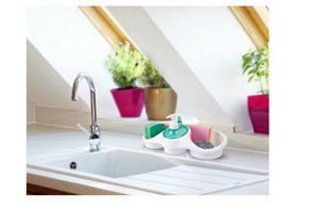 Organizeaza bucataria cu acest suport util pentru un acces facil la accesoriile pentru spalat.Acest organizator 3 in 1 contine un dozator de detergent lichid pentru spalat vase iar in spatiile pentru depozitare se pot pastra bureti, perii, lavete sau bureti de sarma.Organizatorul este dotat cu spatiu special pentru pastrarea inelelor in timpul spalatului. Material: plastic.Culoare: AlbDimensiuni (LxAxI): 28,5 x11x13 cm