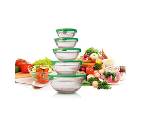 Acasa Articole Bucatarie Set 5 boluri de sticla cu capac