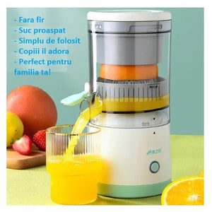 STORCATOR DE FRUCTE DE INALTA EFICIENTA. Storcatorul de fructe electric se roteste la 360 de grade, separa sucul de pulpa cu o eficienta foarte mare si va satisface diferitele nevoi. Cu un singur click va porni storcatorul, economisesti timp si storci fructul pana la ultima picatura. Cu un design fara fir, portabil, storcatorul electric de Fructe foloseste tehnologia USB-C pentru incarcare. I-a storcatorul nostru de citrice fara fir cu tine in tabara, la birou, la pescuit, in concediu sau oriunde, fara sa-ti faci griji ca vei ramane fara energie. Bucurate de suc delicios oricand si oriunde cu un singur clic! Usor de curatat si dezasamblat, in cateva secunde il demontati. Se poate spala in masina de spalat vase sau manual. Are o functie inversa pentru a evita blocajele. Faceti sucuri proaspete, sanatoase si multe altele. Aceasta presa electrica extrage sucul cu un sistem inteligent.