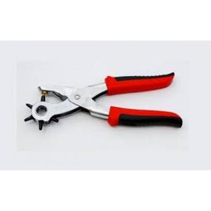 Perforator tip cleste, pivotant cu 6 capete :dimensiuni de perforare interval de la 2.5 mm la 5 mm;manevrabil cu ajutorul celor doua brate incrucisate si articulate intre ele;Este potrivit pentru perforat curele, pentru diferite materiale, cum ar fi : piele, pasla, carton si tesaturi diverse.