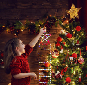 Scara pentru Mos Craciun , LED, multicolor, 25 x 160 cm model stea, fulg, brad