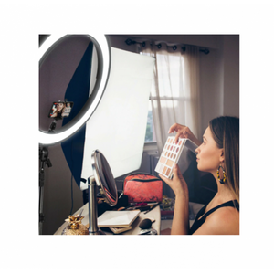 Toti makeup artistii ar trebui sa aiba un astfel de Ring Light in propriul studio. Lumina acesteia pune in evidenta frumusetea machiajului, fiind ideal pentru poze. Pozele pentru Facebook si Instagram vor fi perfecte! Produsul vine insotit de suport pentru telefon, perfect pentru a falicilita filmarile si pozele make-up artistilor, bloggerilor, vloggerilor si a tututor din aceasta bransa. Aveti posibilitatea sa adaptati oglinda pentru make up, suport de telefon sau aparat foto video, iar suportul (stativul) va ofera posibilitatea sa o fixati in pozitia ideala.