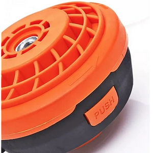 Cu un design ergonomic și funcționalitate îmbunătățită, capul de motocoasa este echipat cu un buton metalic robust, care vă permite să reglați cu ușurință înălțimea de tăiere în funcție de necesități. Butonul portocaliu adaugă un element de vizibilitate și ușurință în utilizare, permițându-vă să operați motocoasa cu precizie și confort.