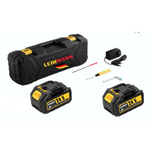 Fierăstraul electric LEIHMANN este echipat cu un motor puternic și eficient, prevăzut cu doi acumulatori de 24V și 5Ah și un încărcător rapid.