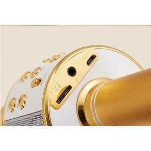 Noul microfon și difuzor WS 858 wireless portabil 2 în 1, este capabil de conectivitate fără nici o conexiune suplimentară datorita tehnologiei bluetooth 4.1 ce poate fie asociat cu dispozitive compatibile Bluetooth. Calitate excelentă a sunetului cu efecte de reverberație ecou este potrivit pentru smartphone-uri iOS și Android, iPad, tablete, orice dispozitiv compatibil Bluetooth.Este compatibil cu majoritatea programelor audio de pe telefon sau de pe computer. Puteți conecta la telefon cu Bluetooth sau cu mufă audio de 3,5 mm.Avantaje:1. Microfon Bluetooth Wireless cu difuzor inclus ce functioneaza simultan2. Sistem de reducere a zgomotului cu 3 straturi pentru redarea exacta a sunetului.3. Suporta Functia TF-Card, plug and play.4. Panou pentru reglarea sunetului multi-functional Parametrii:Material: ABS + aluminiuCuloare: AuriuMarime Produs: Inaltime Microfon 250mm, Difuzor 70*70*65mm (aprox.)Greutate: 460g (aprox.)Output power: 10mw headphone output 5w speaker outputIncarcare: DC5VFrequency range: 100mhz-10000mhzNivel Maxim Presiune Acustica: >115db 1khz THD<1%Reverb mode: echo is active reverbPower supply: built-in 18650 batteryCapacitate baterie: 1800MahVersiune Bluetooth: Bluetooth 4.1, transmisie stabila, consum mic Pachetul Include:1x Microfon1x Cablu IncarcareCulori: gold, negru, rose gold (in functie de stoc)
