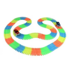 Stingeti lumina si pista va straluci si in intuneric! Iar daca mai adaugati pe pista si masinuta cu LED, veti realiza un peisaj uimitor, plin de culori!