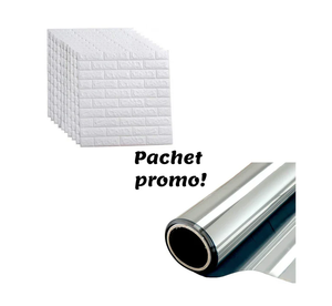 Set 10 x Placa de tapet adeziv caramizi albe 3D, 77x70 cm+Folie reflexiva pentru geamuri interioare, cu efect de oglinda, protectie solara UV