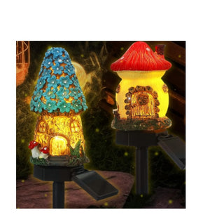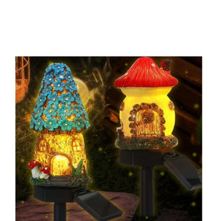 Set 2 lampi solare decorative pentru gradina, model casuta zane