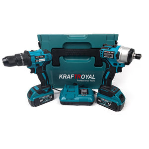 Set masina de gaurit si infiletat si masina de insurubat cu impact KrafTRoyal 2 acumulatori 36V 8AH