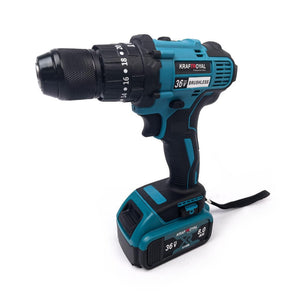 Autofiletantă cu impact cu motor fără perii și șurubelniță, 36 V 8 AH, geantă de transport, marcă KRAFTROYAL