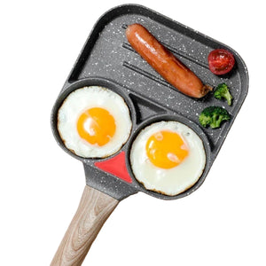 Cu tigaia cu trei compartimente poti satisface patru gusturi diferite. Pregateste pentru copiii tai clatite dragute si oua prajite de dimensiuni egale. Poti face chiar si mancaruri vegetariene sau din carne in aceeasi tigaie fara ca acestea sa se atinga.