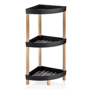 Etajera de colt din lemn si plastic cu 3 nivele 33x33x80 cm