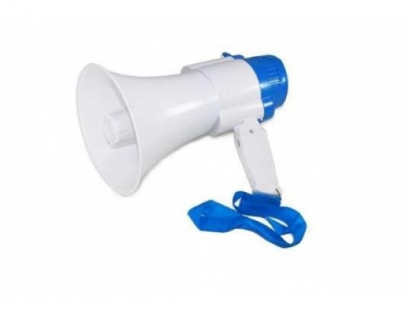 Caracteristici:- putere maxima: 5W;- raza de acoperire: 200m;- diametru palnie: 15cm;- microfon intern inclus;- reglaj volum;- buton melodie;- curea de umar inclusa;- functie de inregistrare-redare: maxim 12 secunde;- functioneaza cu acumulator 6V inclus, reancarcabila la priza (220V), sau 4 baterii tip R20.