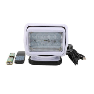 Proiector LED Rotativ cu Telecomanda Wireless 50W, 4000 lumeni, SPOT Beam, AlbSpecificatii produs:Putere: 50WLuminozitate: 4000 lumeniNumar leduri: 10x5W high intensity CREE LEDTensiunea de lucru: 9-32VClasa protectie: IP 67Amperaj: 2.6A@12V, 1.4A@24VTemperatura culoare lumina: 6000KCuloare corp: AlbMaterial protectie lentile: PolicarbonatUnghi lumina: SPOT BeamDimensiuni: 230 mm (L) x 220 mm (W) x 190 mm (H)Baza magnetica: 185 mm x 185 mmTelecomanda, rotatie 360 grade circular si 120 grade verticalDurata de viata: > 50.000 ore
