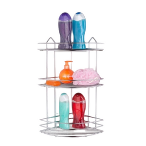 Raft baie metalic 3 locuri 23x23x47 cm. Este potrivit pentru perete sau orice alt punct.