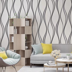 Set 10 x Tapet 3D Autoadeziv cu model alb cu dungi negre