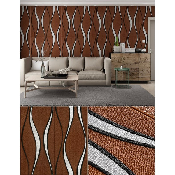 Set 10 x Tapet 3D Autoadeziv cu model maro cu dungi albe