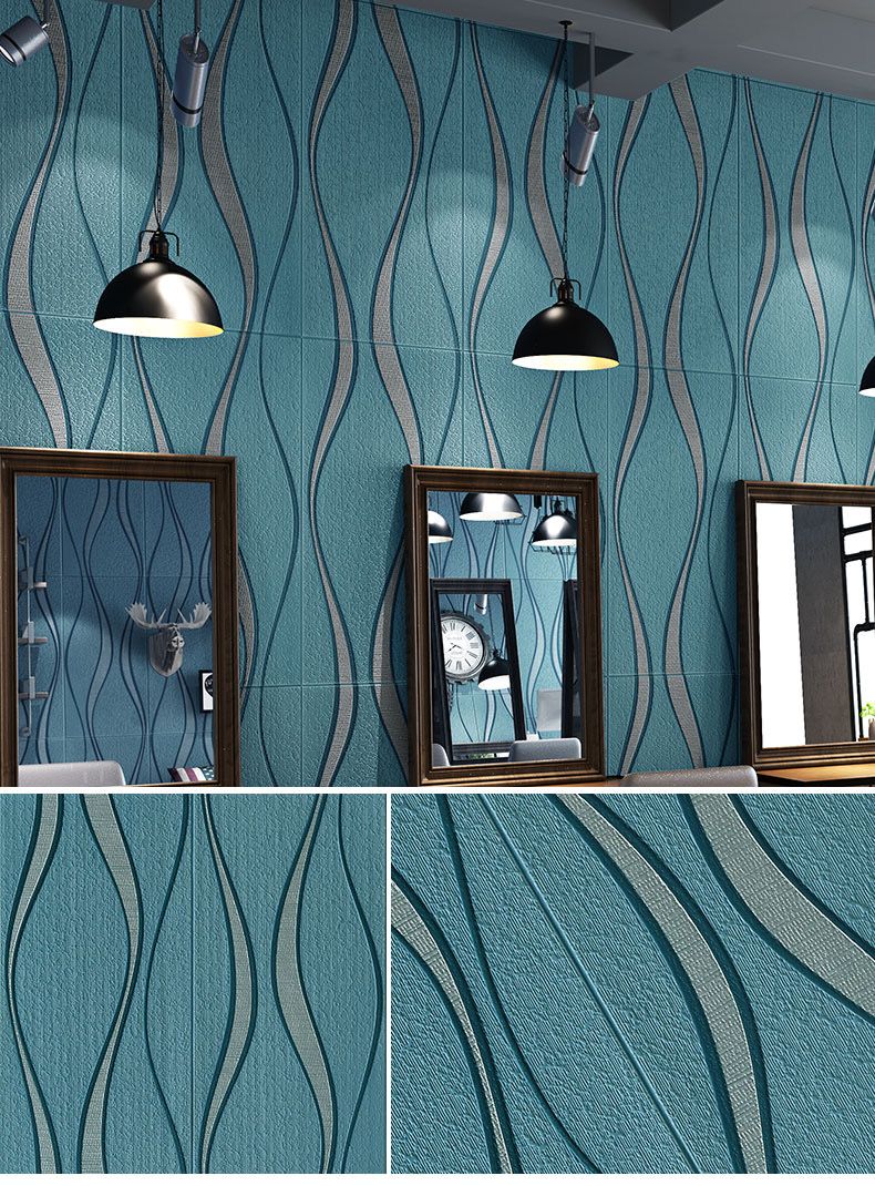 Set 5 x Tapet 3D Autoadeziv cu model albastru cu dungi gri