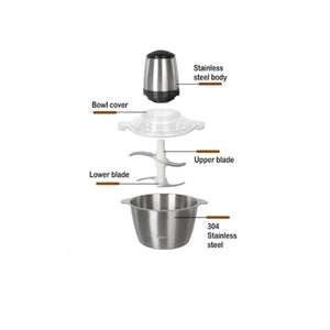 Tocator electric pentru carne si legume, 4 lame inox, 2 viteze, bol inox 2L