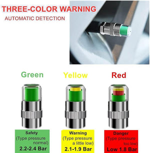 Capacelele sunt setate la presiune de 2.2 Bari, iar daca presiunea in pneuri este corecta indicatorul acestora va fi de culoare verde.