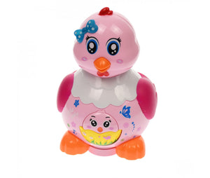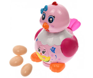 Noua jucarie in forma de gaina este un animal amuzant, hazliu si interesant care se incarca cu 3 oua, se porneste si incepe sa faca oua dar, in acelasi timp, capul, aripile si coada i se misca. Aceasta jucarie este perfecta pentru copii ce vor sa inceapa sa se inteleaga cu animalele.