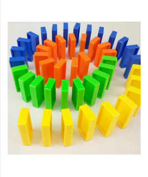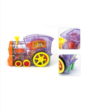Trenuletul electric emite sunete si lumini, are un design placut si elibereaza piesele domino unul cate unul.