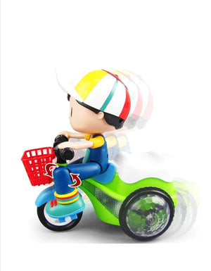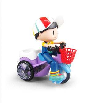 2. Jucaria triciclu adopta un design rotativ la 360 de grade, lumini LED colorate si muzica, care arata cool si poate starni cu usurinta interesul copiilor.