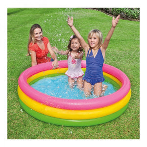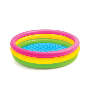 Piscina gonflabila Sunset glow este confectionata din vinil, compusa din 3 inele gonflabile, viu colorate. Diametru piscinei este 147 cm, iar inaltimea 33 cm. Pompa pentru umflat nu este inclusa in pret.