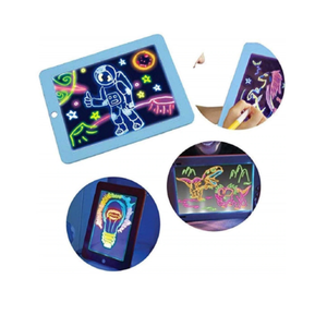 Tabla Magica desenat 3D luminoasa, transparenta, cu leduri si 4 carioci Fluorescente + 14 schite