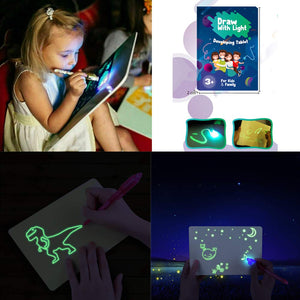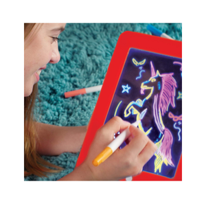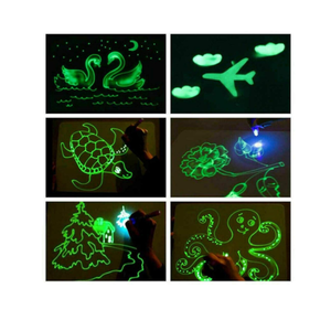 Desenati cu Creionul cu lumina Led: De la atingerea „pensulei” pana la „panza” vor exista linii de lumina, a caror luminozitate si claritate depinde de distanta de la marker la Plansa Magica si de unghiul de inclinare.Aceasta jucarie dezvolta abilitatile de desenat si creativitatea: o tabla luminata pentru desena, usoara, un conceput unic pentru activitatea creativa comuna a copiilor si parintilor Ajutati copilul sa isi descopere potentialul creativ in timp ce veti avea siguranta de faptul ca, mobilierul si tapetul din apartamentul dvs. nu vor fi „decorate” cu desene multicolore.