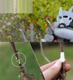 ~ Taiati din partea buna a plantei (altoi) o grefa cu 1-2 muguri si introduceti-l in planta gazda in sectiunea care tocmai a fost decupata