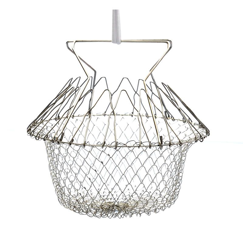 Caracteristici: ustensila de bucatarie  este un cos din otel rezistent, pliabil, care este nelipsit din bucatariile moderne din intreaga lume un mare ajutor in bucatarie, atat in cea privata cat si cea din restaurante usor de utilizat si depozitat extrem de utila cu Magic Kitchen depozitati alimentele, le clatiti, spalati, strecurati, prajiti, fierbeti, opariti legumele, pastele, etc. Dimensiuni: pliat: diametrul de 23 cm pentru utilizare: 23 x 15 x 18 cm