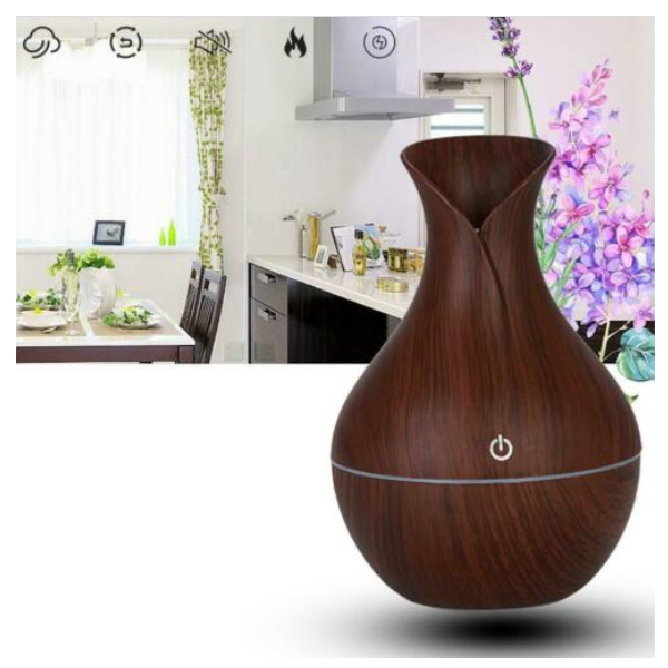 Umidificator si aroma difuzor electric cu ultrasunete este ideal pentru spatii de dimensiuni mici/medii. Are dimensiuni mici ceea ce il face usor de mutat dintr-un loc in altul si are un volum de apa al tancului/rezervorului de apa de 130 ml. Pe langa functia de aromaaterapie veti putea beneficia si de functia sa de umidificator de aer, ceea ce este tot in beneficiul sanatatii si confortului dumneavoastra. Difuzorul de arome, prin emisia de molecule de oxigen degajate prin inalta frecventa a ultrasunetelor, ajuta la reducerea elementelor poluante din incinte, inclusiv camerele de fumatori. Este un produs silentios, sigur si linistitor, asigurand aer proaspat si mirosuri deosebite din natura - un produs destinat clipelor de relaxare. Ofera o stare de bine reducand tensiunile emotionale si anxietatea. Aparatul difuzeaza o ceata rece, placut mirositoare. Ceata parfumata produsa imbogateste aerul din incinta cu particule fine de apa, ajutand pielea sa devina mai proaspata si mai catifelata prin eliminarea uscaciunii aerului. Aroma-difuzoarele sunt utilizate pe scara larga in camere de zi, dormitoare, camerele de ingrijire a copilului, autoturisme, birouri, camere de spital, hoteluri, saloane de infrumusetare, magazine, sali de gimnastica medicala sau de intretinere etc.